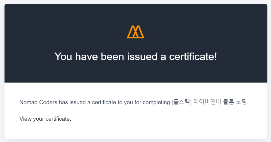 결론적으로 이 에어비앤비 클론 코딩 강의는 코딩을 하면서 보람을 많이 느끼게 한 강의라고 생각하고, 클론 코딩 강의이기 때문에 부담없이 천천히 배울 수 있는 강의라고 생각합니다.